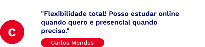 O aluno escolhe, a cada aula, como quer aprender: online ao vivo ou presencial, sempre com a mesma turma e o professor.